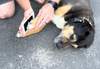 Gently wipe your pet’s paw to remove any dirt or moisture.